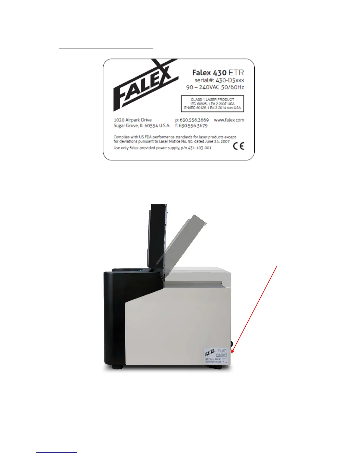FALEX 430 ETR - Identification and Certification Label