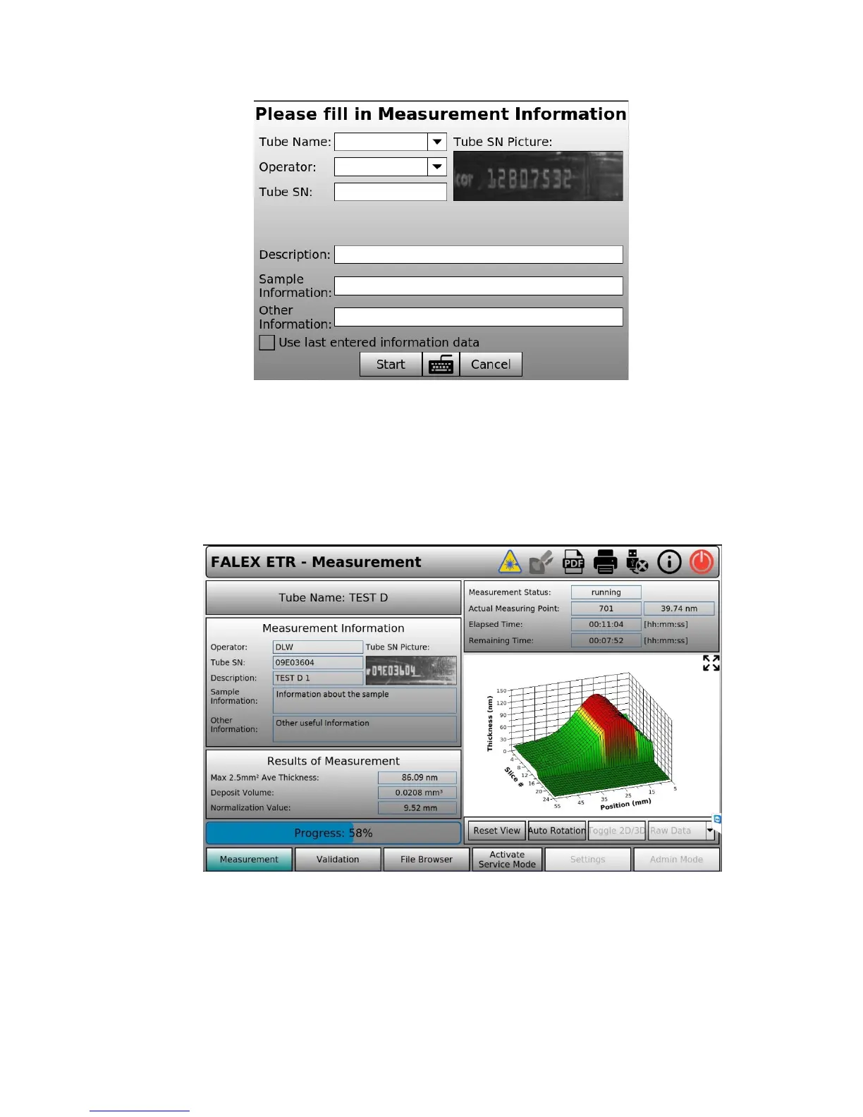 6. Select the ‘Start’ button located at the bottom of the ‘Measurement Information’ display. This will