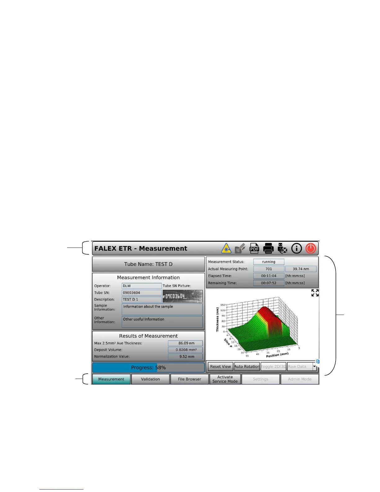 finger, stylus, or mouse pointer (if a USB mouse is connected). During testing, test data is displayed