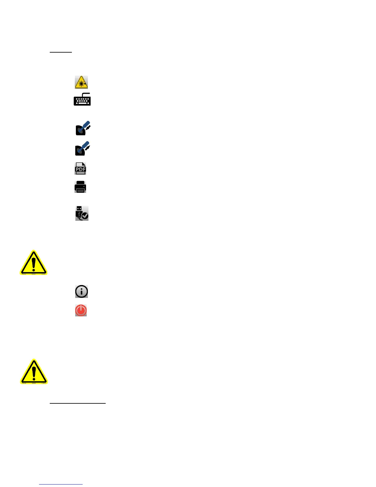 • USB Utility – Allows operator to safely close USB storage device communications and