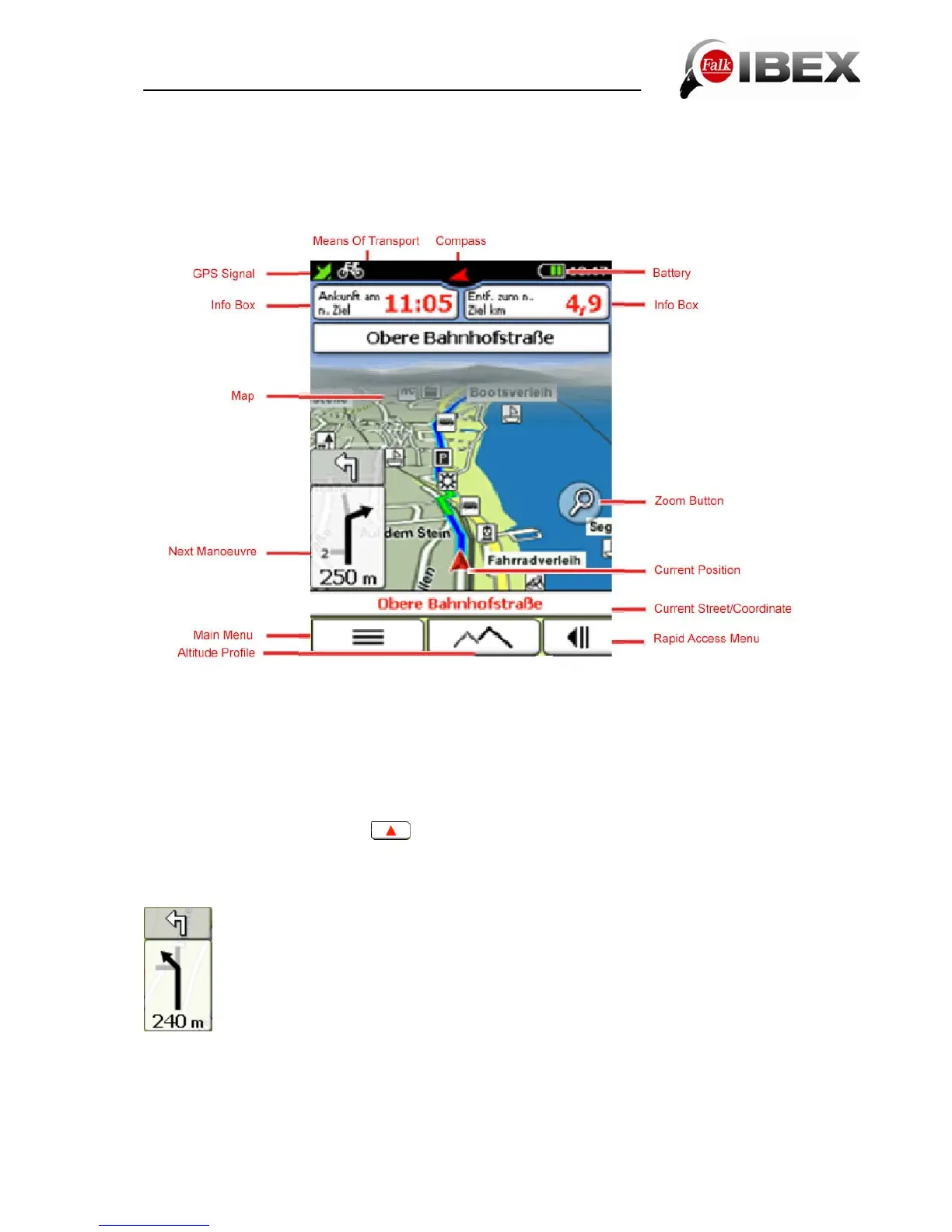 Info Box: Shows information about the calculated route. Tap on the box to select other