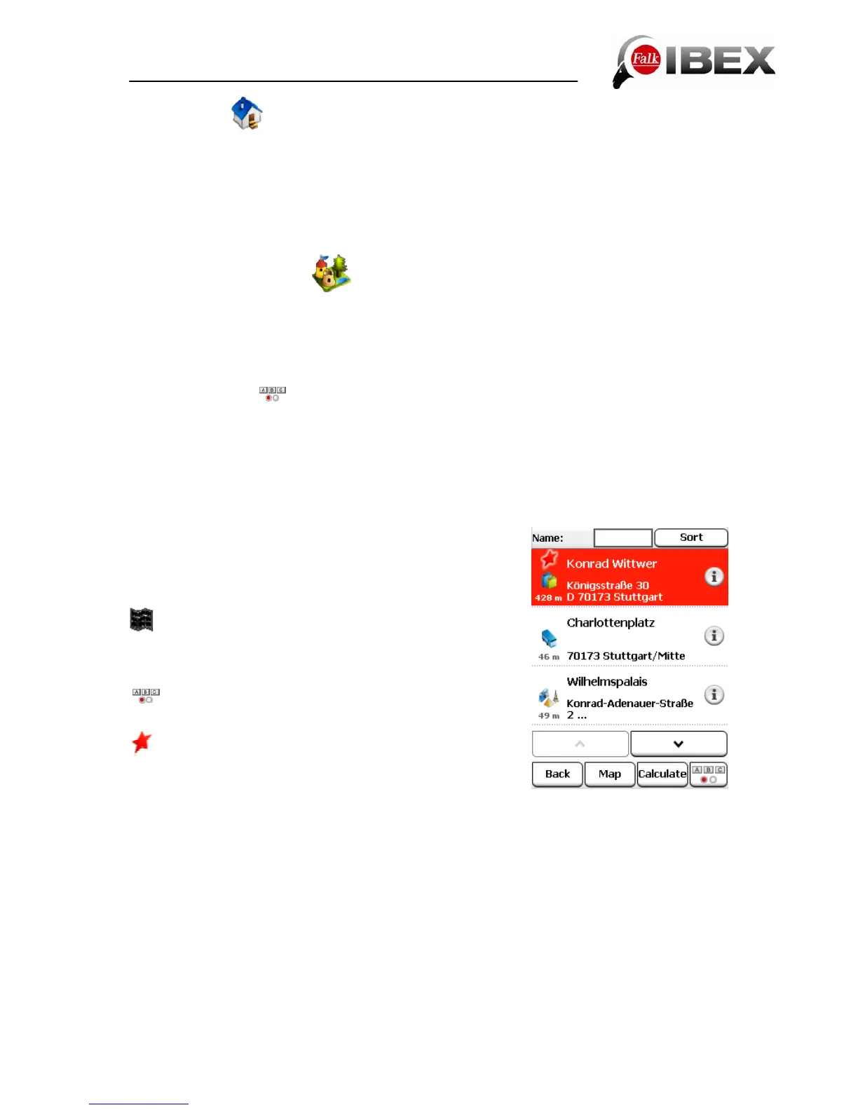 by tapping on "Home" once. The route from your current position to your home is calculated