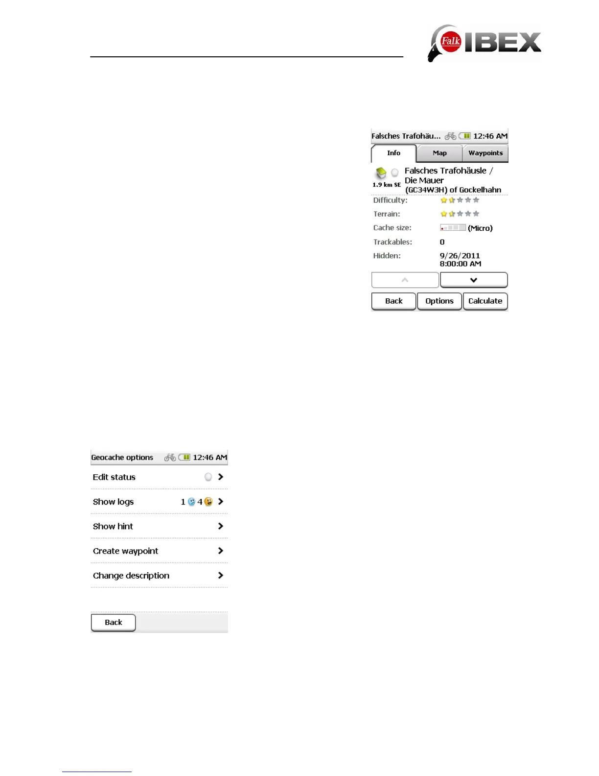 Calculate - starts the route calculation to this geocache.