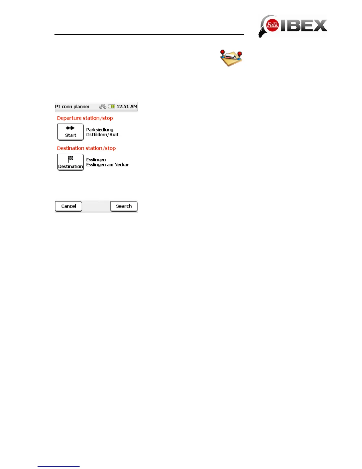 Note: If you want to integrate a public transport connection into a navigation from a starting