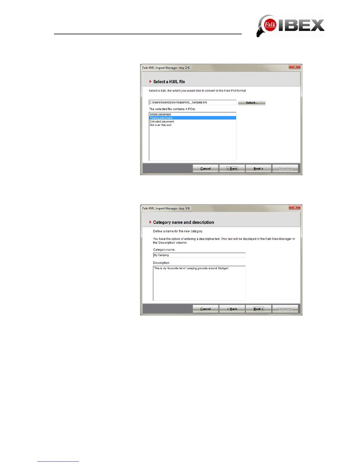 KML/KMZ import in the Falk Navi-Manager
