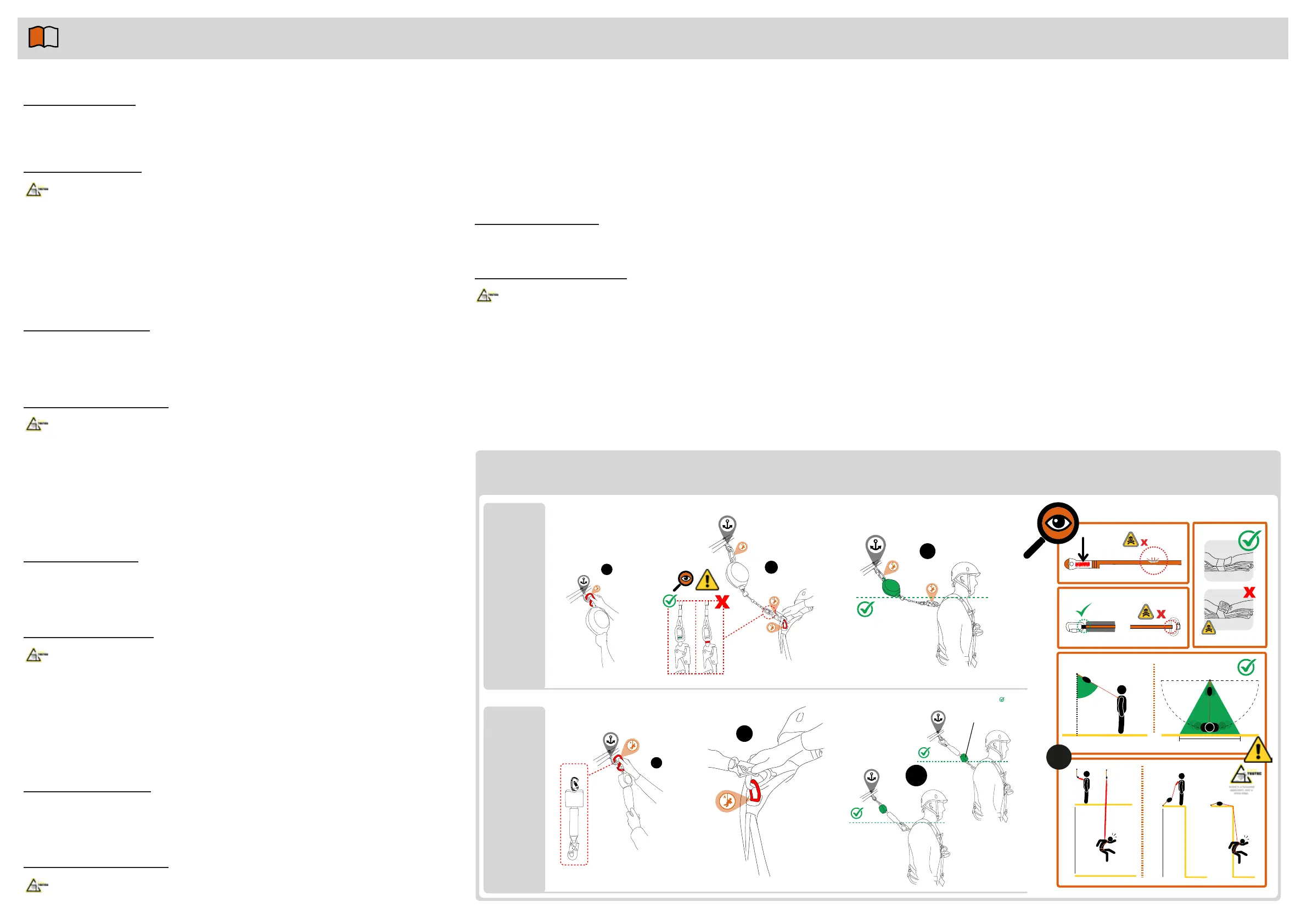 sikker at forbindelsesled låses rigtigt og at håndtaget bevæger sig frit og eektivt; kontroller faldets indikator hvis den signaliserer at et større fald blev standset, anvend ikke produktet og anmod om omgående service; træk rebet til maks. mulig længde for at