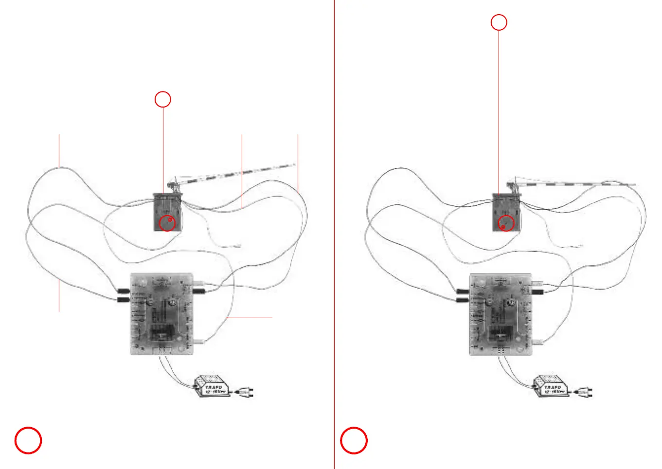 Beide Schranken nacheinander anschließen und auf Startposition bringen.