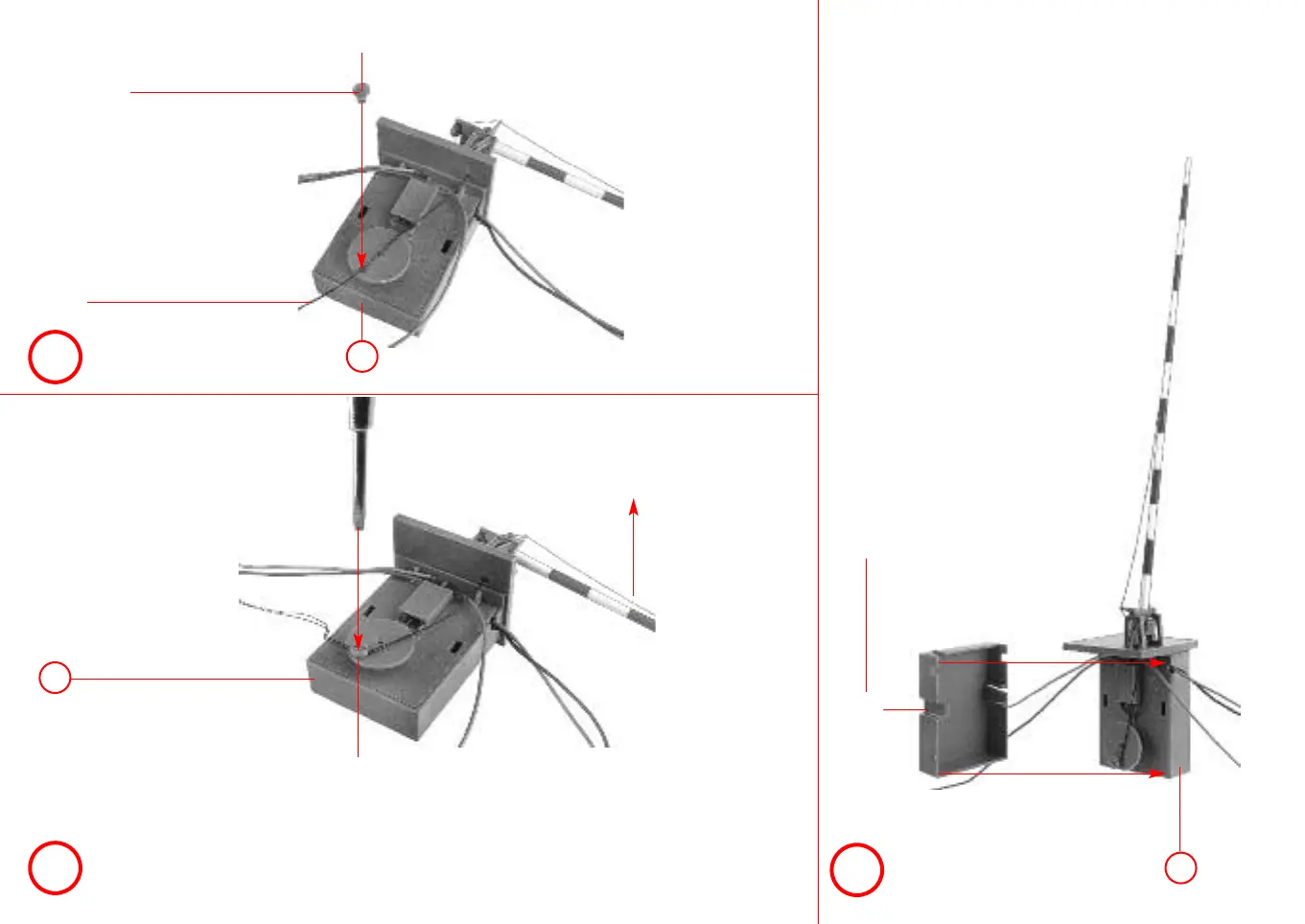 Schroef vastdraaien totdat de spoorboom verticaal staat (garen en schroef met secondenlijm vastzetten).