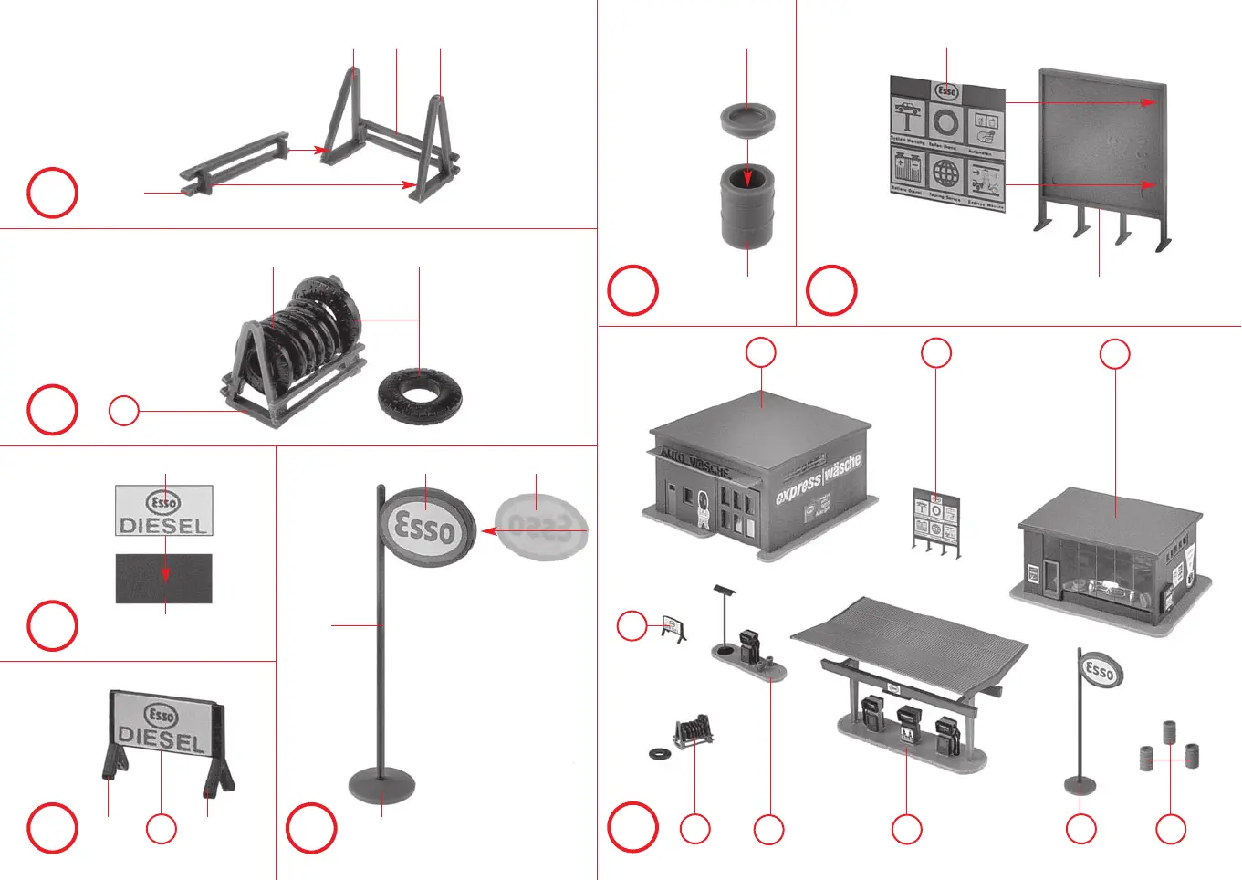 Faller 130296 - Final Model Details and Accessories; Tire Rack and Signage Assembly