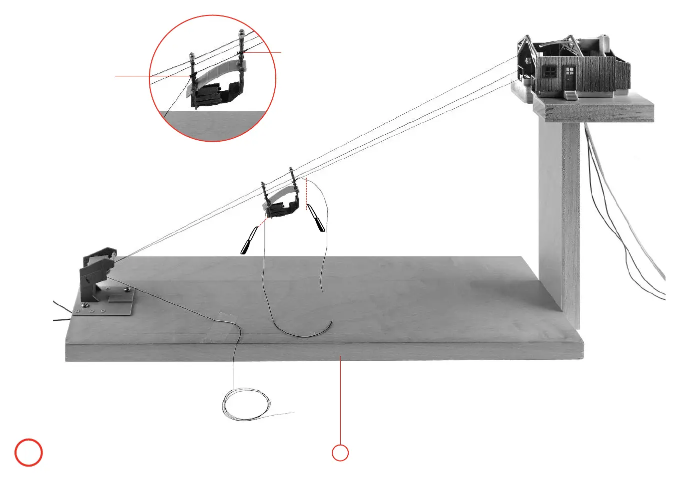 Gondelarmen moeten parallel staan! Perlondraad aan
