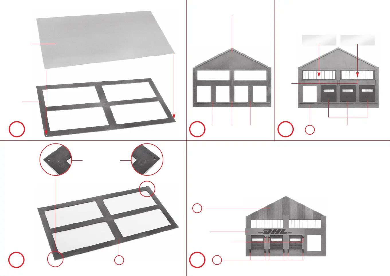 Pour la variantion 2, monter le mur pignon, pièce 2/3 une fois sans les tampons rep. B.