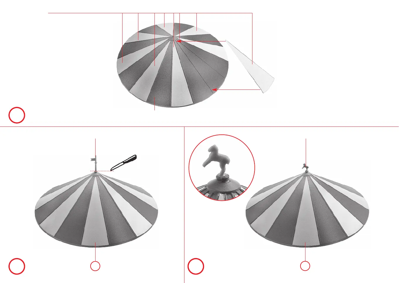 Faller 140316 - Carousel Canopy Assembly; Preparing Canopy Striped Sections; Finishing the Canopy Attachment