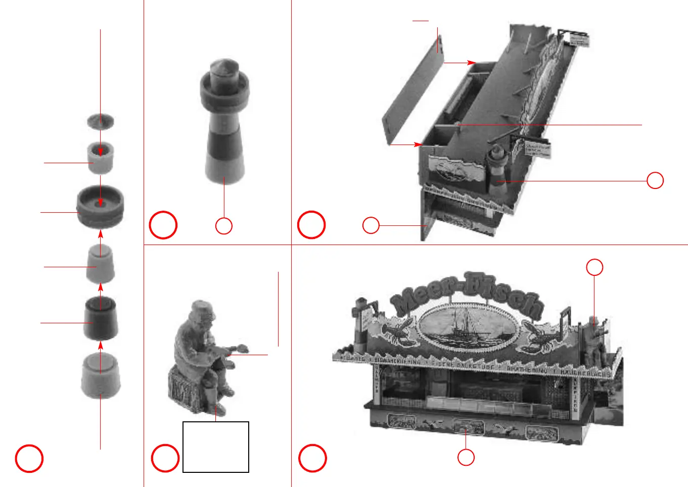 Faller 140445 - Assembly Step C: Lighthouse;Tower Detail; Assembly Step D: Figurines and Details; Assembly Step E: Contents Bag Reference; Assembly Step F: Glue Application Tip