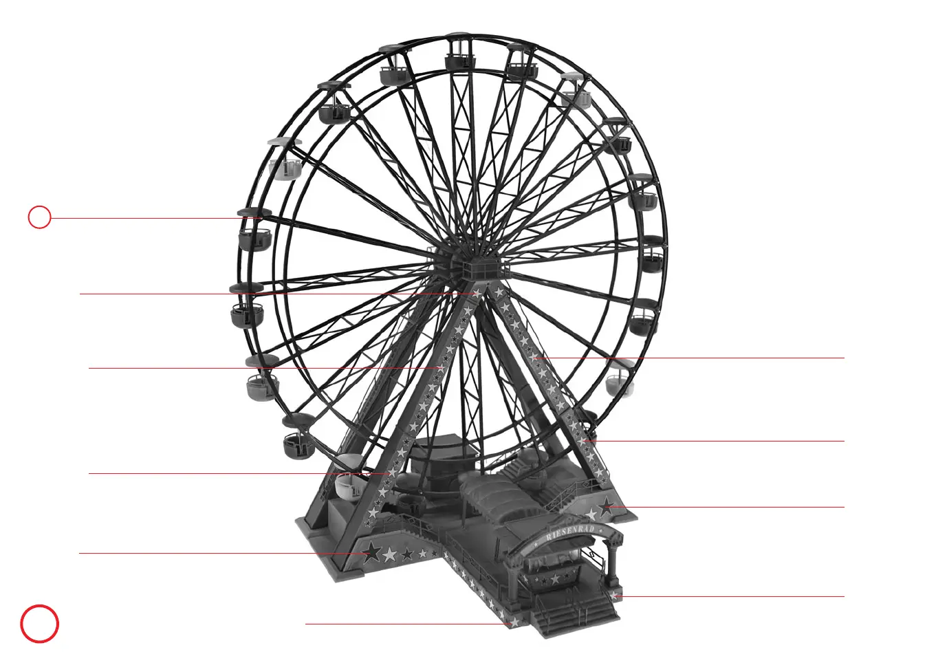 Gondolas + input (red (+) / blue (-) cable) to 5 V DC voltage.