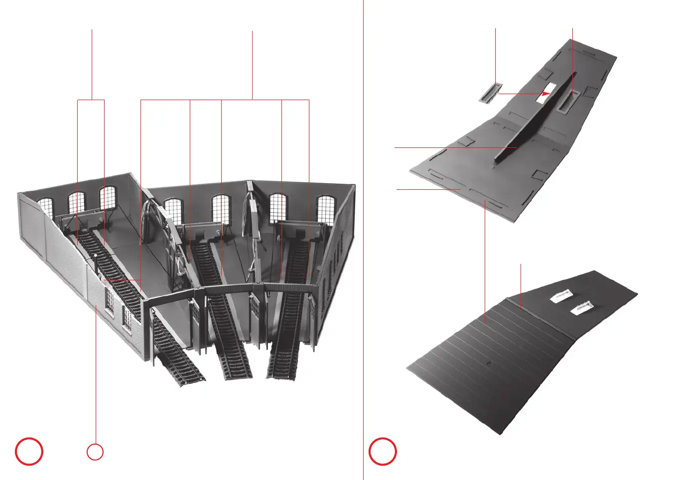 Faller 3-STALL ROUNDHOUSE - Track and Base Detailing; Track and Ramp Assembly