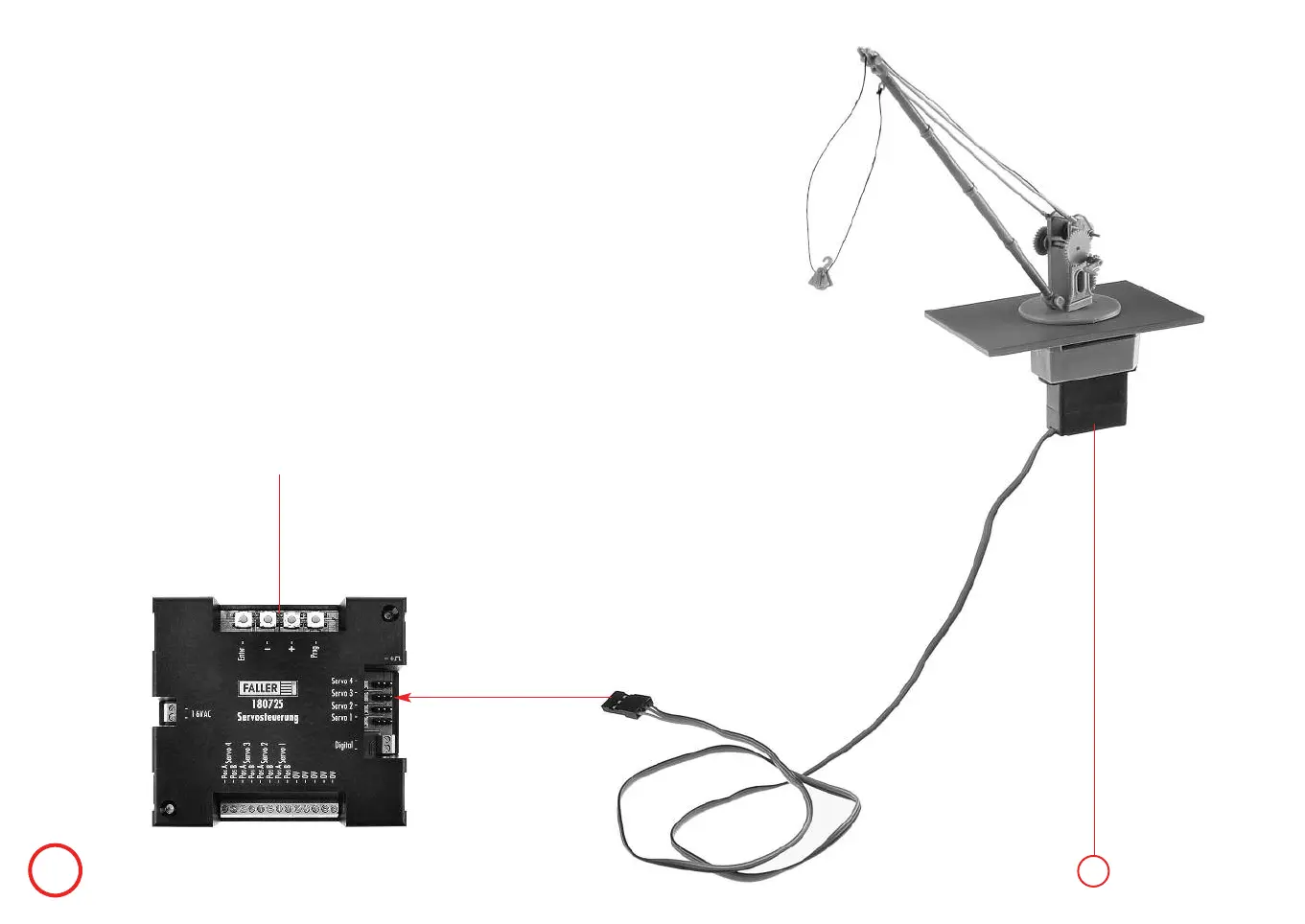 Das Modell gegebenenfalls umstecken, damit sich der Kran in dem gewünschten Feld bewegt (max. 90°!).