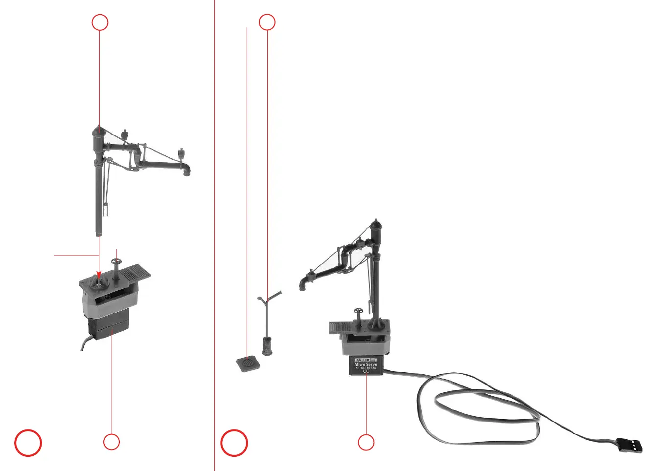 Het tandwiel van de micro servo’s (art. nr. 180726) mag niet met de hand worden bewogen!