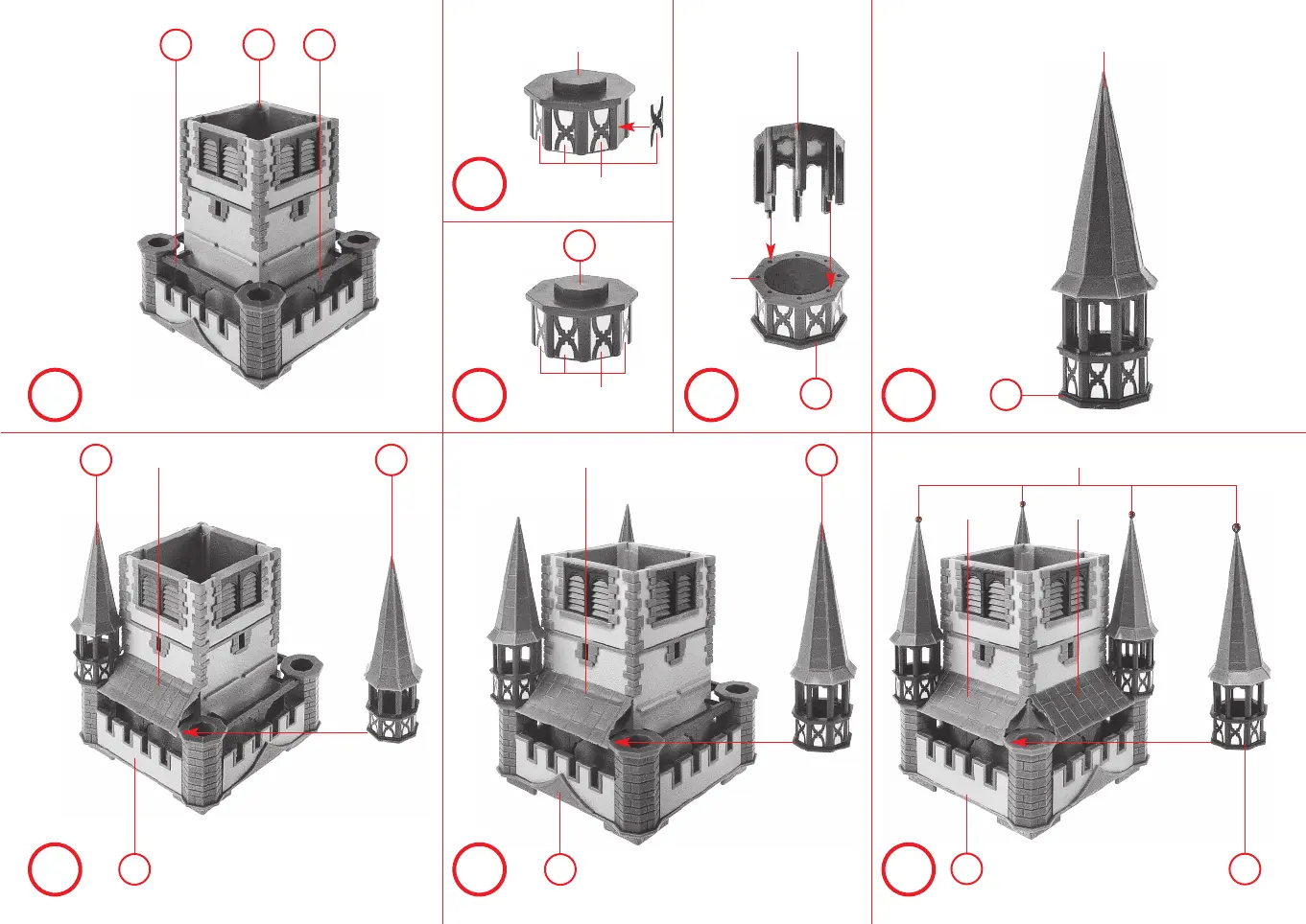 Faller HISTORICAL TOWN GATE - Finalizing the Main Tower Spire; Assembling Decorative Base Elements; Constructing and Attaching Tower Spires