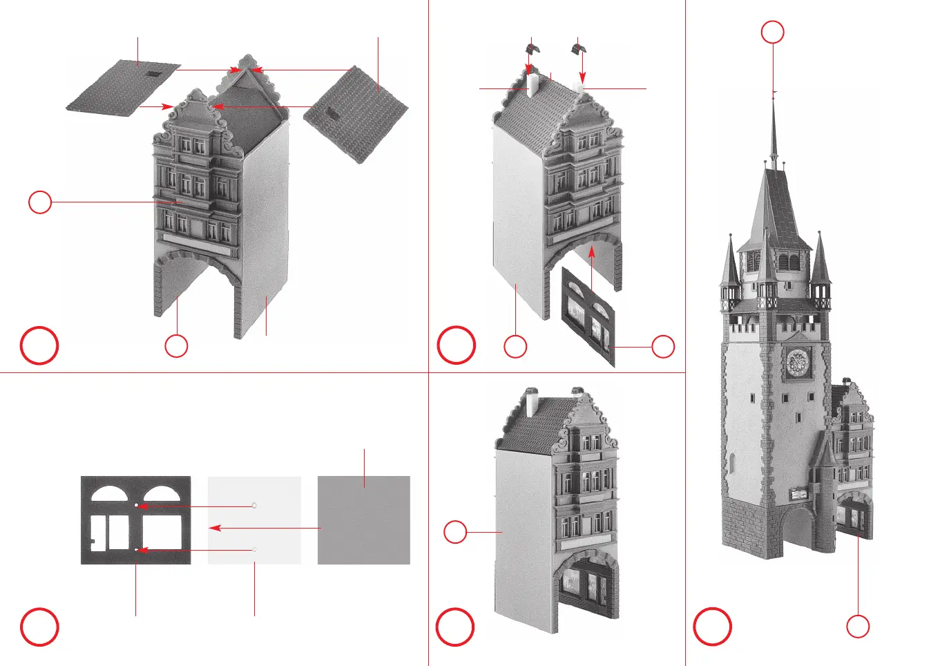 Faller HISTORICAL TOWN GATE - Finalizing Additional Buildings; Adding Roofs and Building Details; Attaching Curtains and Finalizing Sections
