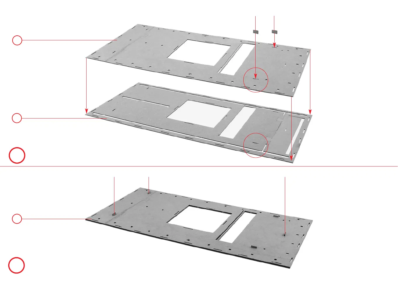 Faller HORREM - Connecting Laser-Cut Layers; Joining Upper Laser-Cut Layers (G & H); Securing Lower Laser-Cut Layers (I & J)