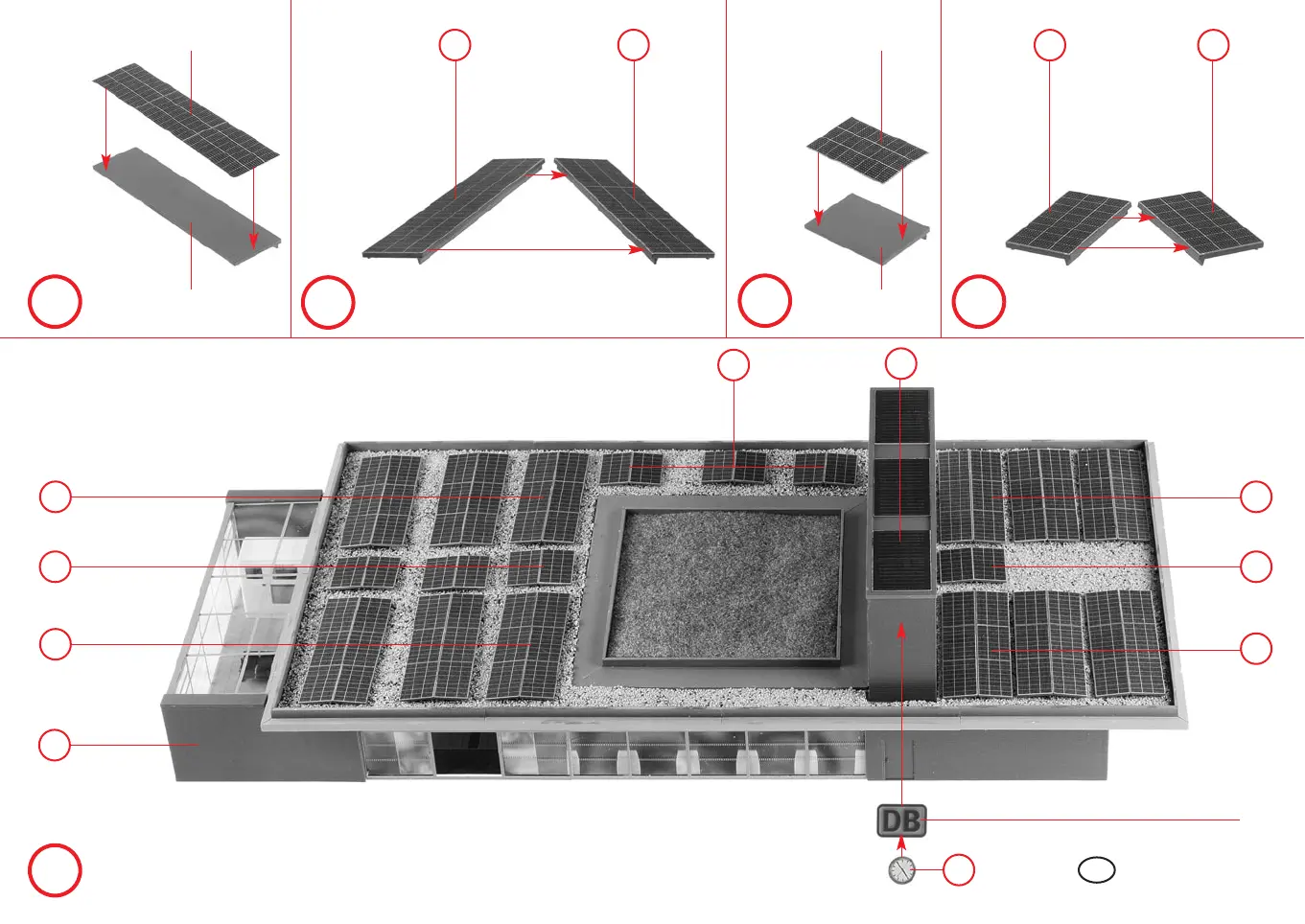Faller HORREM - Solar Panel Installation; Assembling Solar Panel Units (f, g); Attaching Solar Panels to Roof (h, i)
