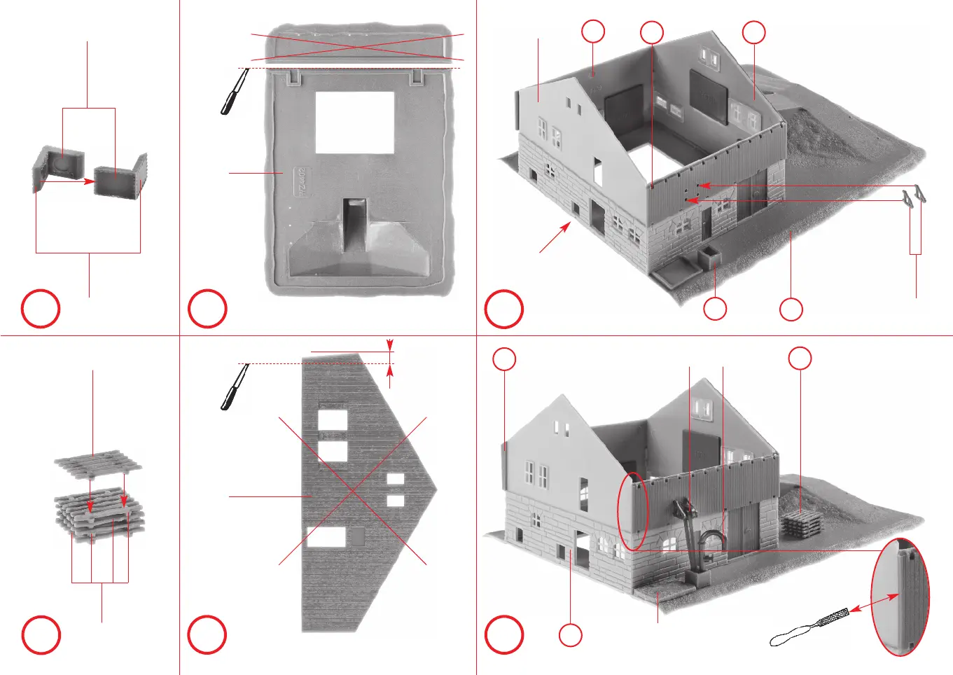 Faller LARGE ALPINE FARM WITH BARN - Intermediate Assembly Steps; Diagrams G-L: Structural Assembly and Detailing