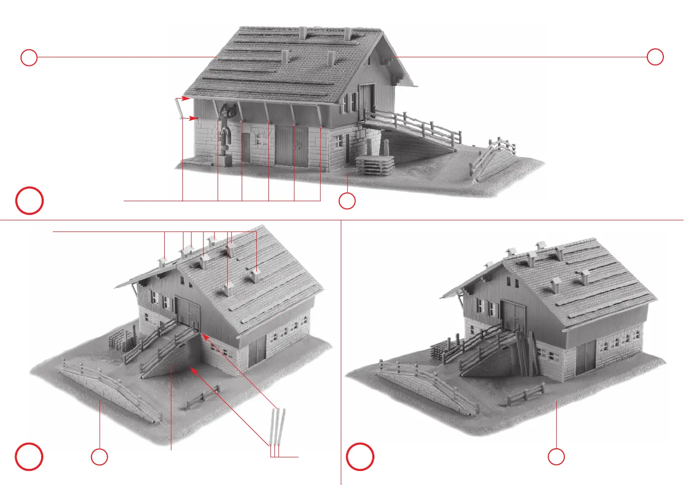 Faller LARGE ALPINE FARM WITH BARN - Final Construction Stages; Diagrams W-Y: Completing the Structure