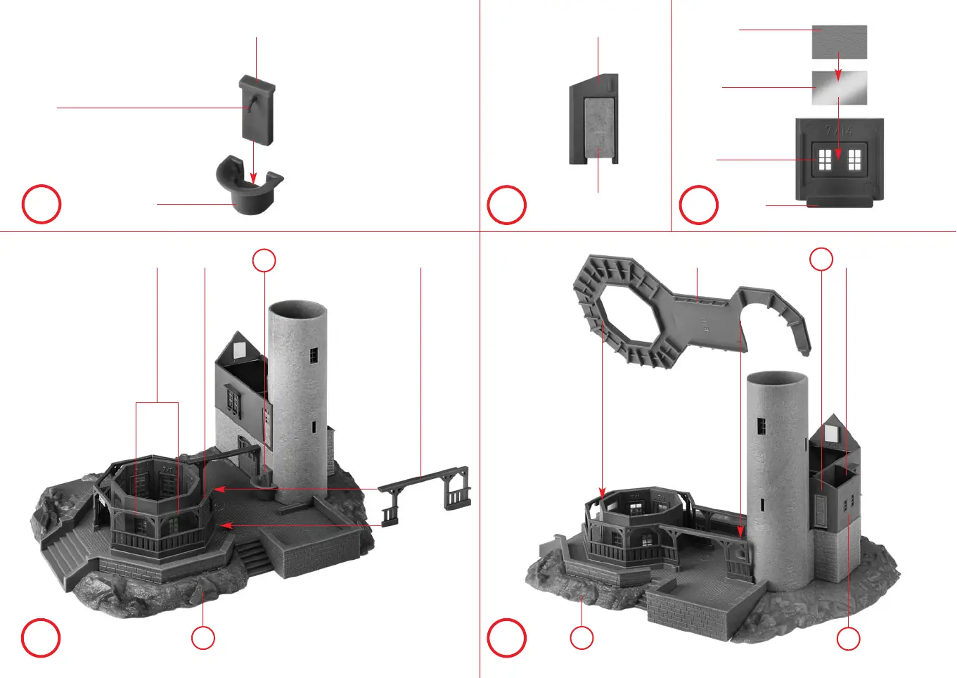 Faller Schlossberg Inn - Connecting Structures and Detailing; Assembly Steps a-e
