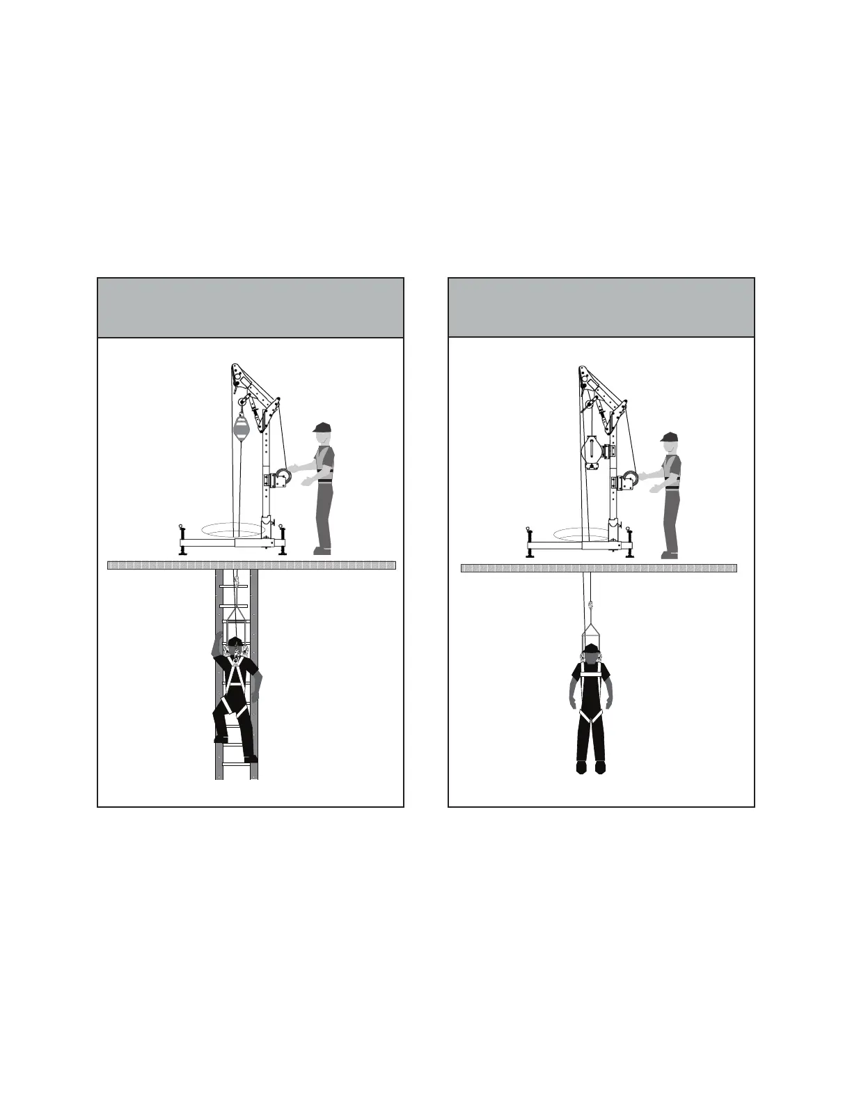 When no alternate method of entry/egress (such as a ladder) exists the conned space entrant will be suspended, raised and lowered