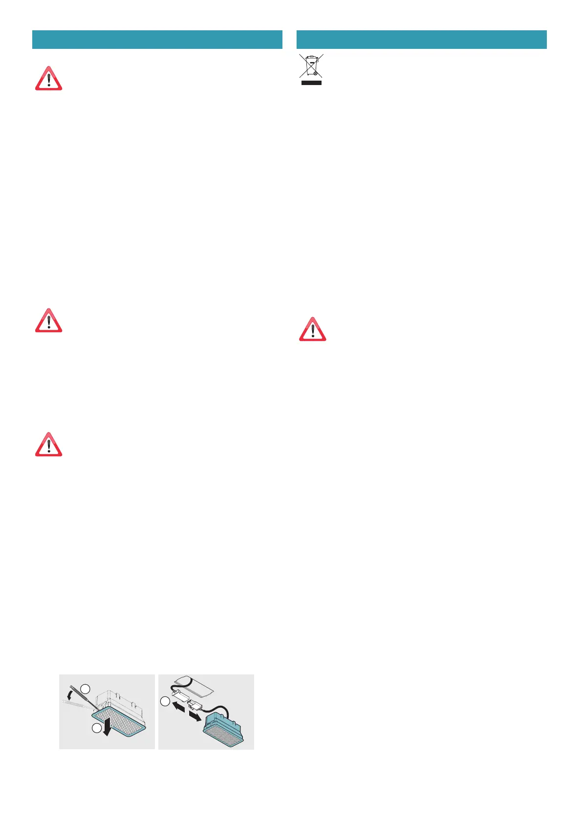 Sähköosia tai moottoriin liittyviä osia liesituulettimen sisällä ei
