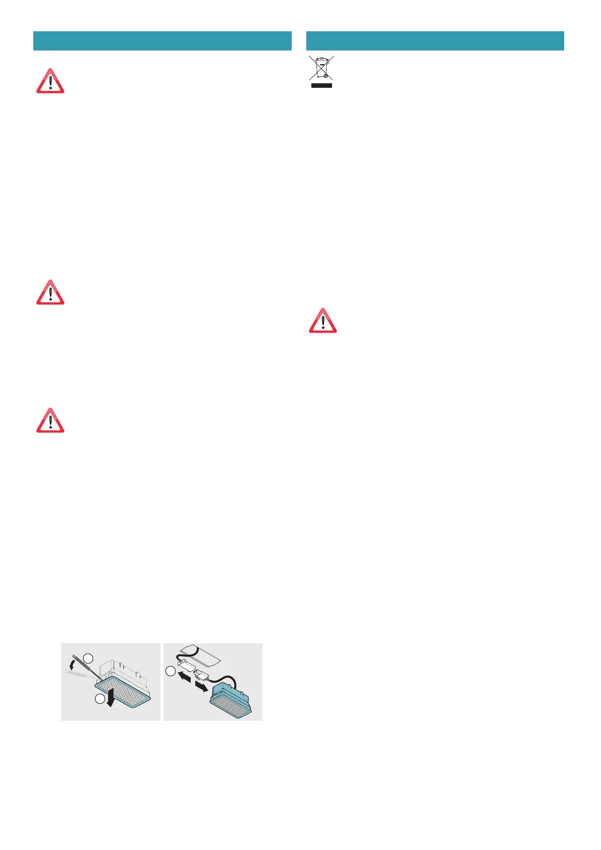 For uttrekking og innsetting av fettmetallfiltrene, se montasjeanvisningene.