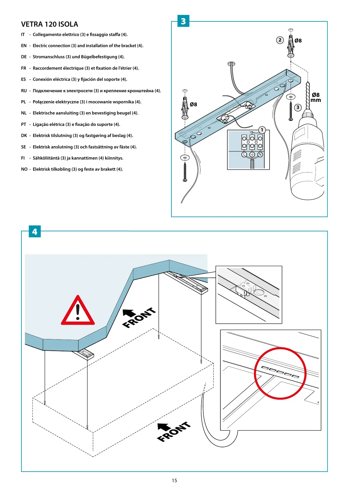 FI - Sähköliitäntä (3) ja kannattimen (4) kiinnitys.