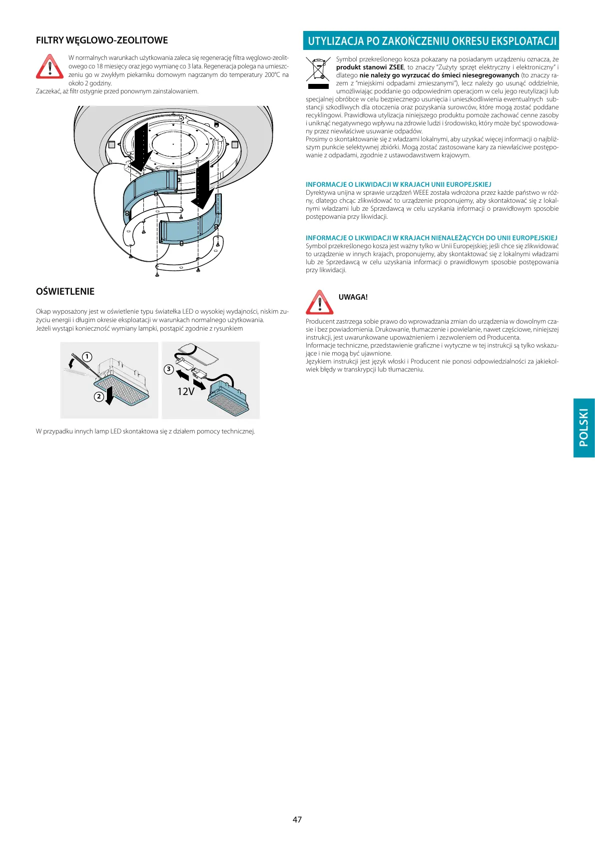 Językiem instrukcji jest język włoski i Producent nie ponosi odpowiedzialności za jakiekol-