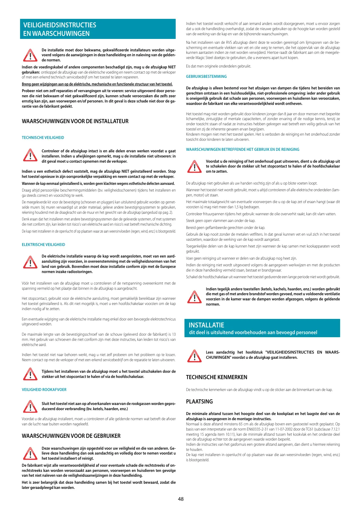 WAARSCHUWINGEN VOOR DE INSTALLATEUR