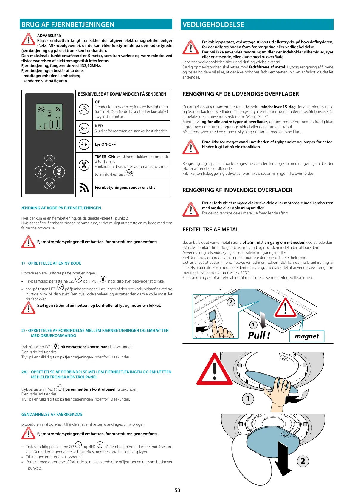 Det er forbudt at rengøre elektriske dele eller motordele inde i emhætten