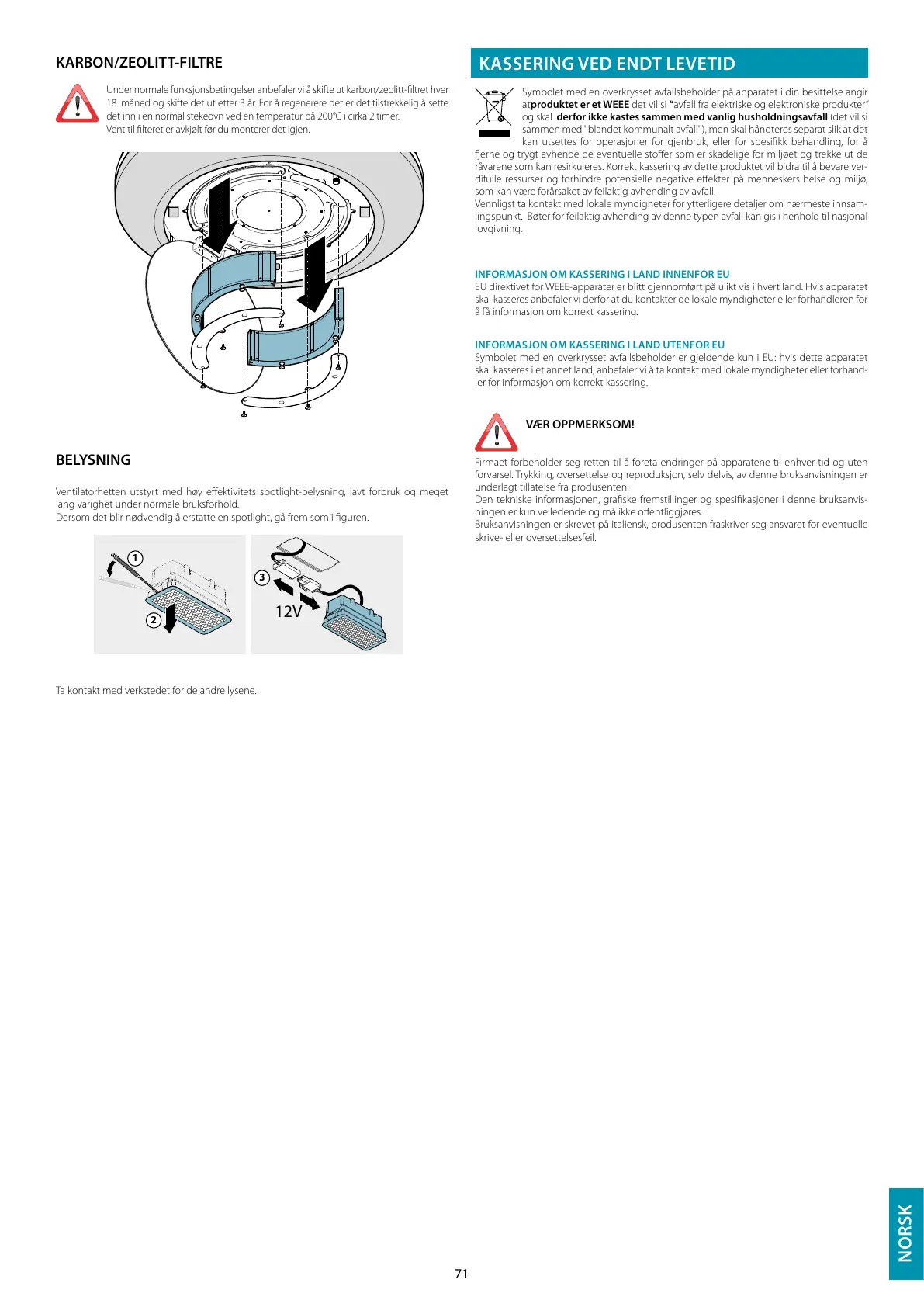 Ventilatorhetten utstyrt med høy eektivitets spotlight-belysning, lavt forbruk og meget