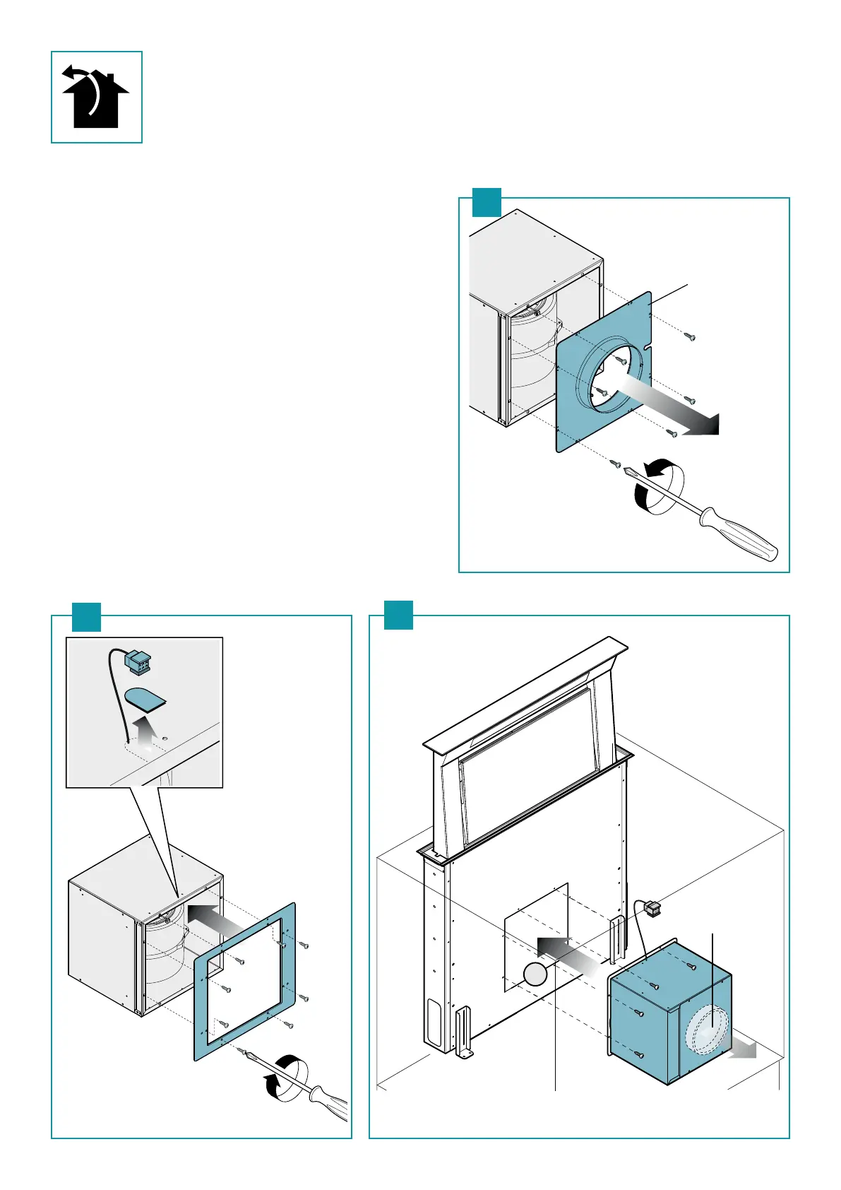 la cappa (6); ssare il motore alla cappa se l'uscita aria è frontale