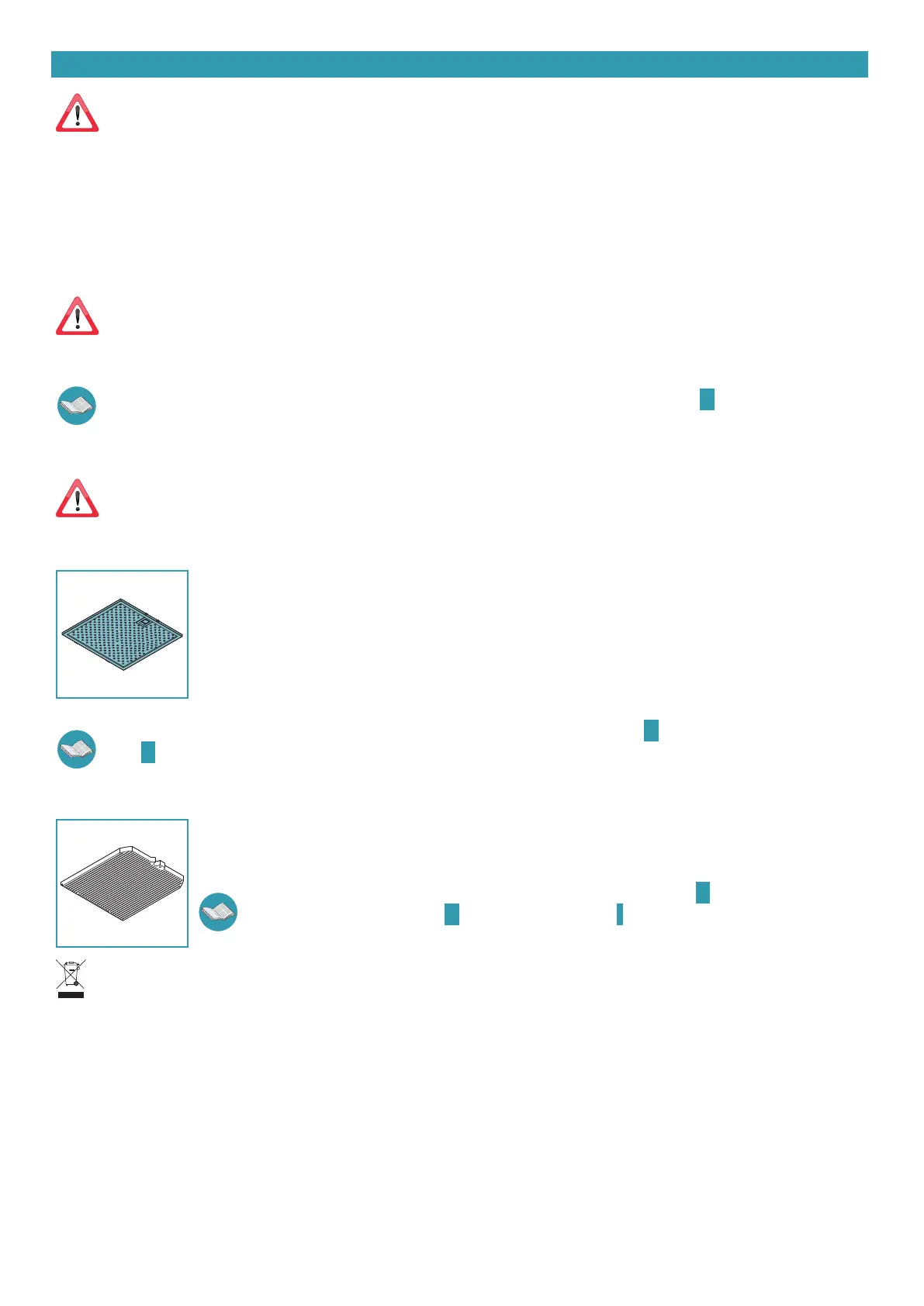 Erityisesti on huomioitava metalliset rasvanpoistosuodattimet ja aktiivihiilisuodattimet; toistuva suodattimien ja niiden tukirakenteiden puhdistus