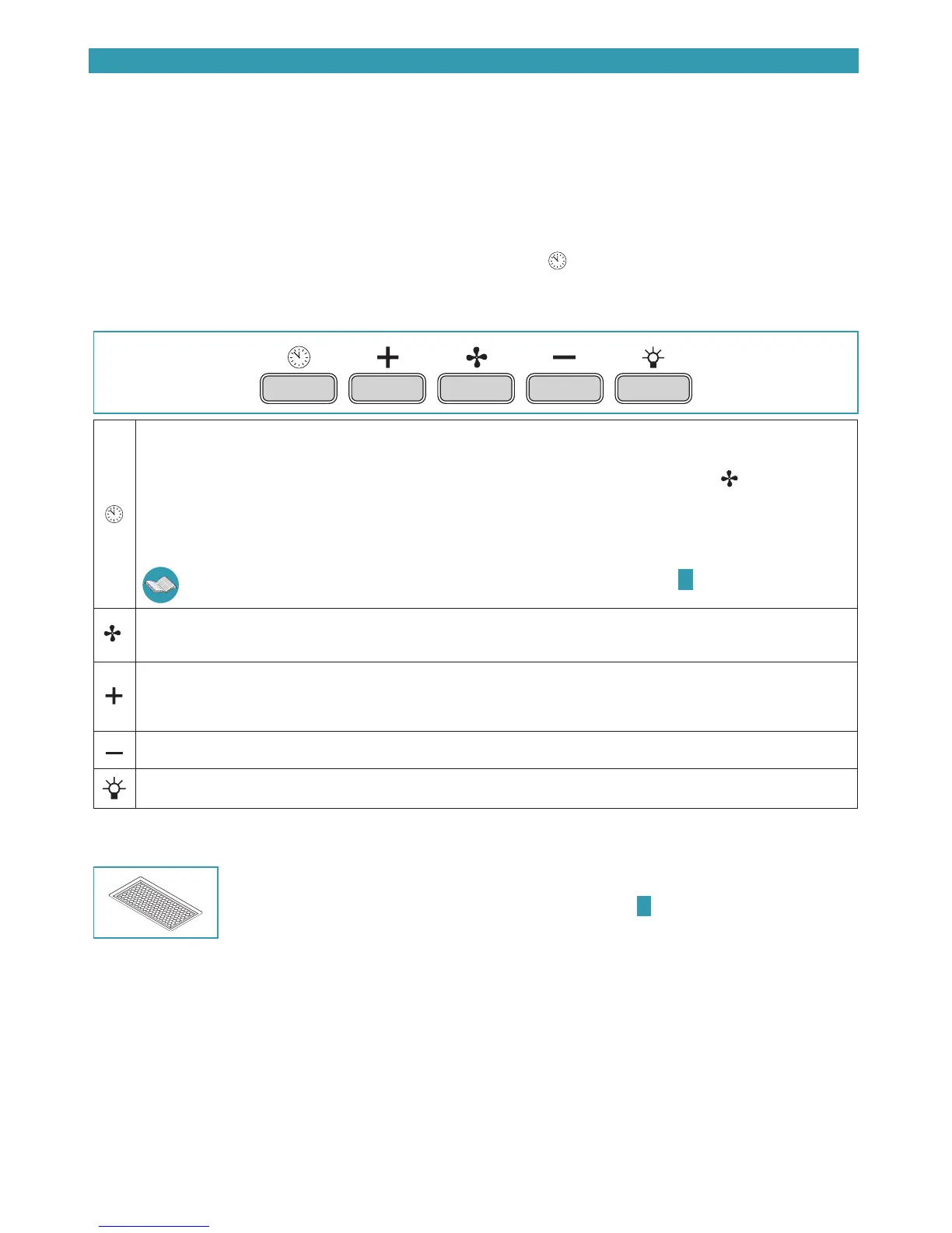 With the Timer function active, the hood can still be switched o by the user at any time by pressing the key