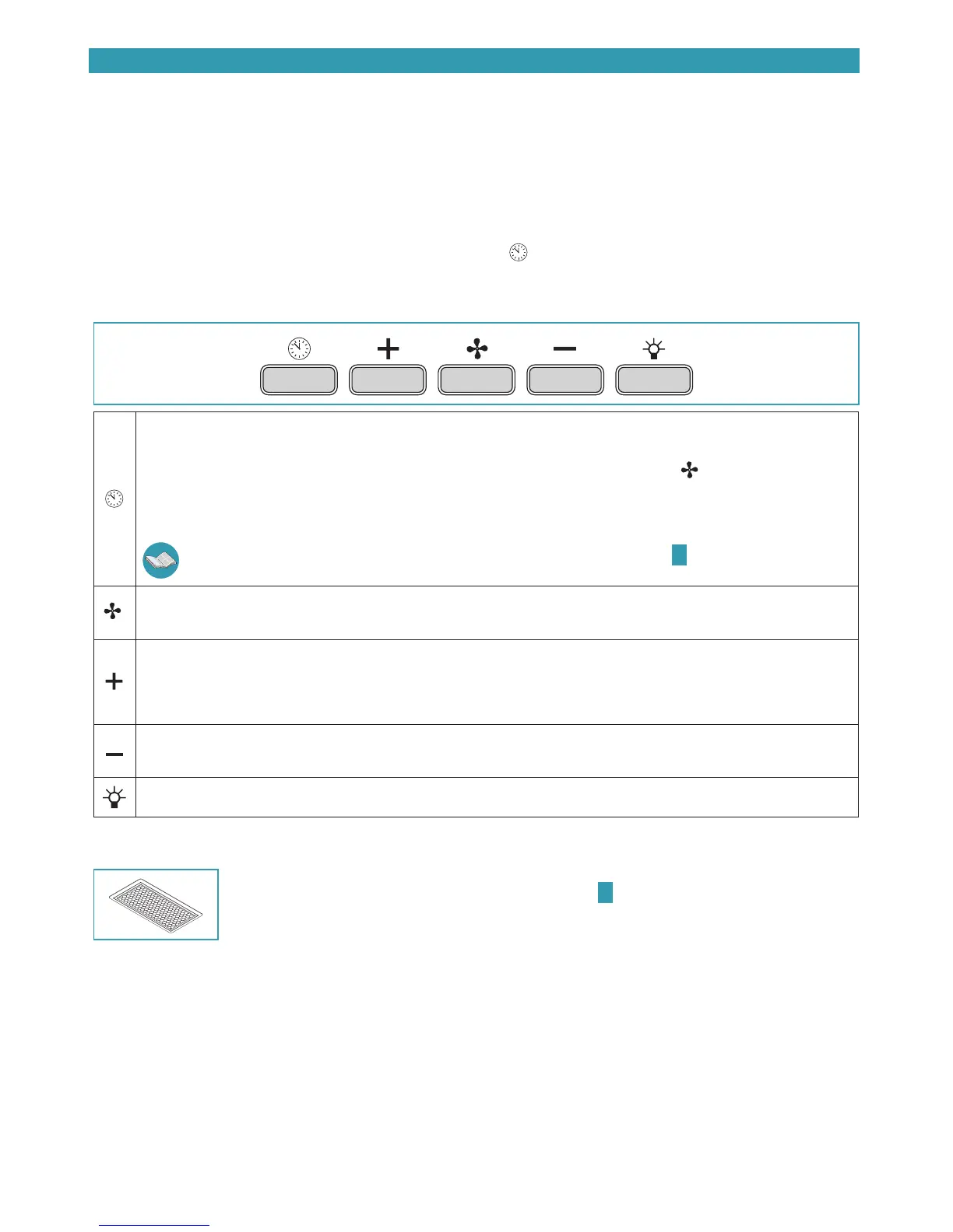 Painamalla näppäintä kuvun moottori syttyy (tai sammuu): moottori käynnistyy viimeksi ennen sammutusta käytössä olleella nopeudella
