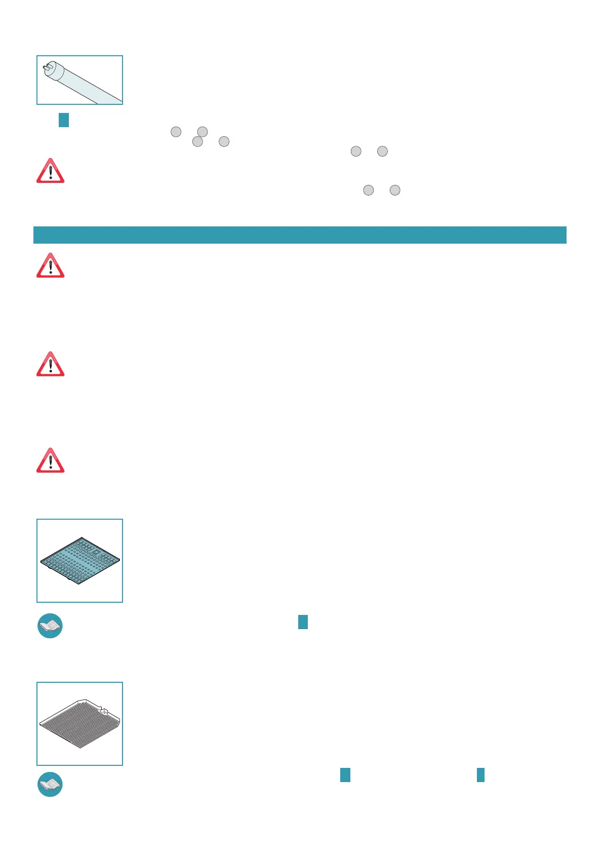 • put in a new fluorescent lamp by performing, in reverse order, the operations described in Fig.