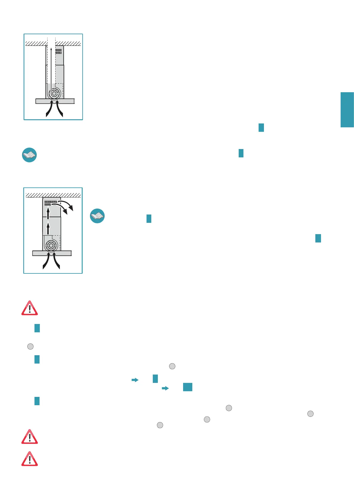 Im Falle einer Zwischendecke wird das Gitter (T+T1) immer an der gemauerten Decke befestigt: Sollte dies nicht möglich sein, und die Abzugshaube muss