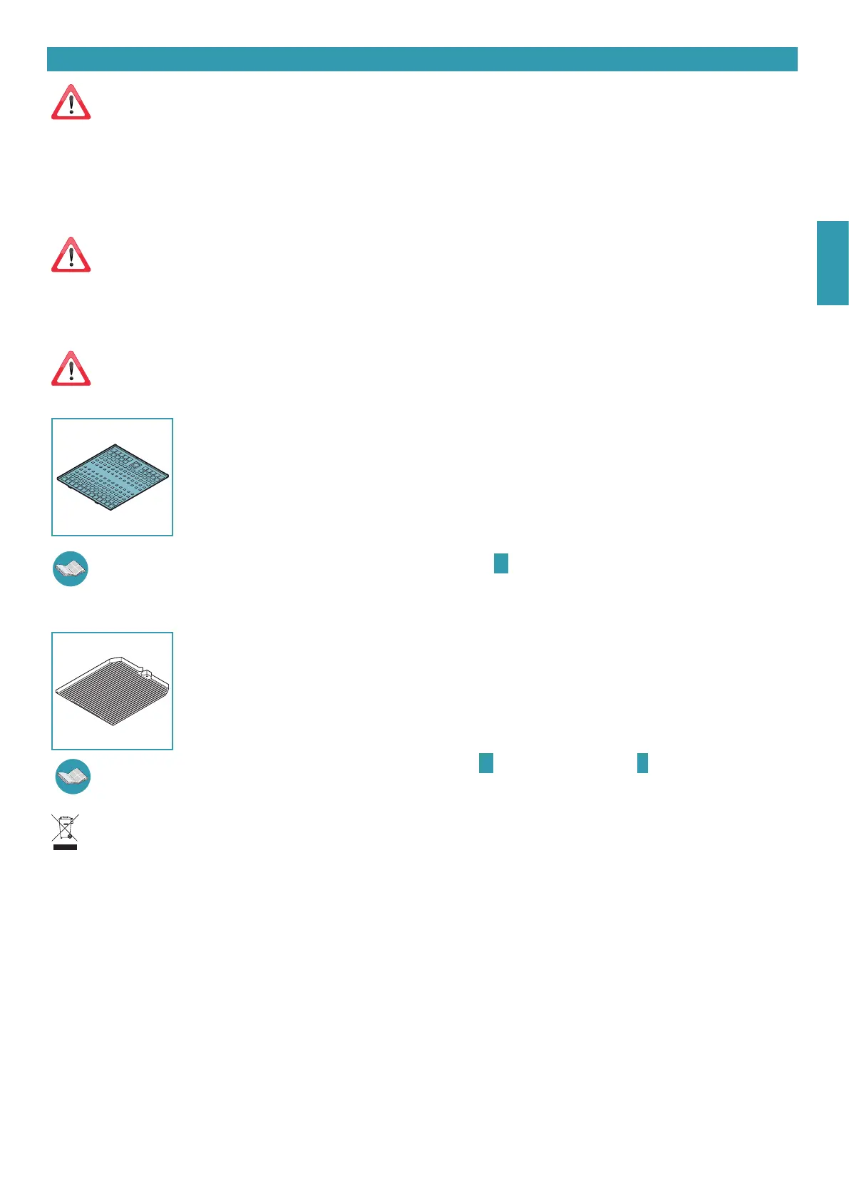 Um die Metallfettfilter entnehmen zu können, den Hebel betätigen (siehe Anleitung O auf S. 9). Zum Wiedereinsetzen den Vorgang in umgekehrter