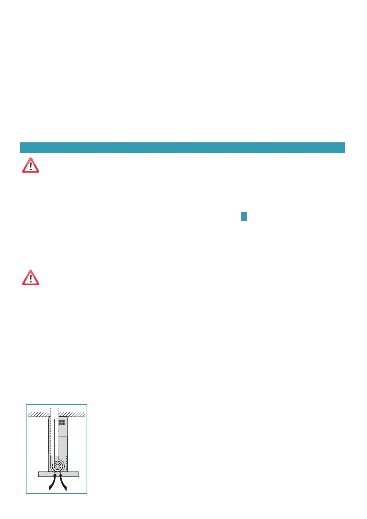 Forbind aldrig apparatet til udsugningskanaler med røg fra forbrænding (f.eks kedler, pejse osv...) og overhold alle de