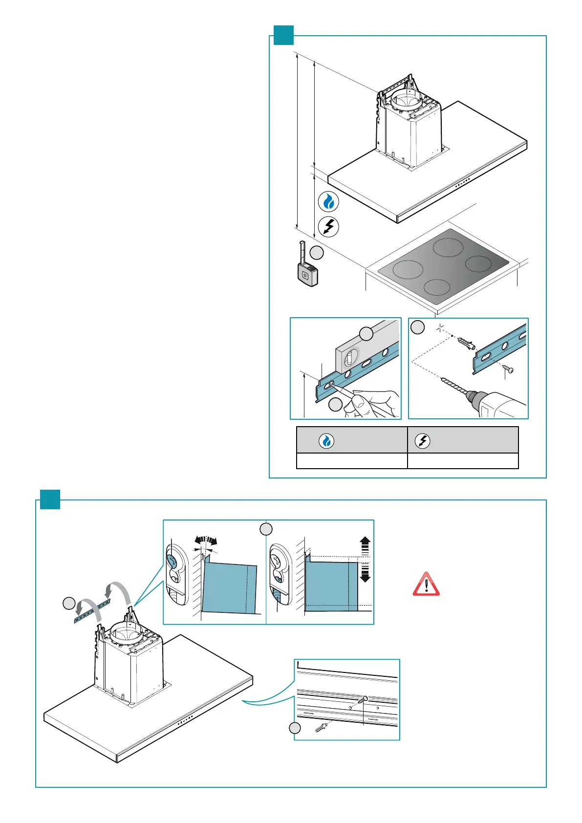IT - Misure per l’installazione (1). Fissaggio cappa (2).