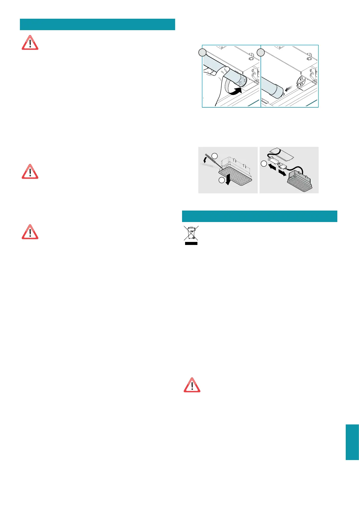 Sähköosia tai moottoriin liittyviä osia liesituulettimen sisällä ei