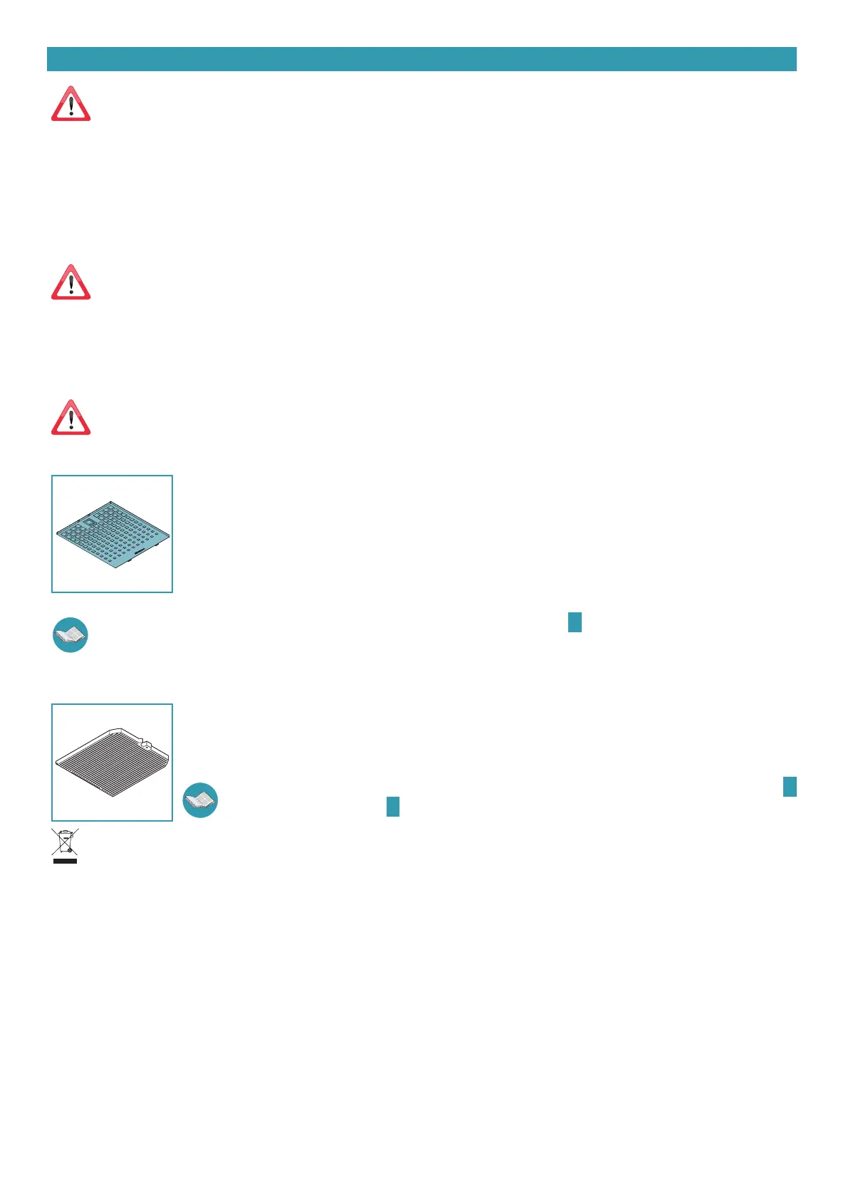 Les attentions particulières sont destinées aux ltres métalliques et aux ltres au charbon actif ; en eet, le nettoyage fréquent des ltres et de leurs supports garantit