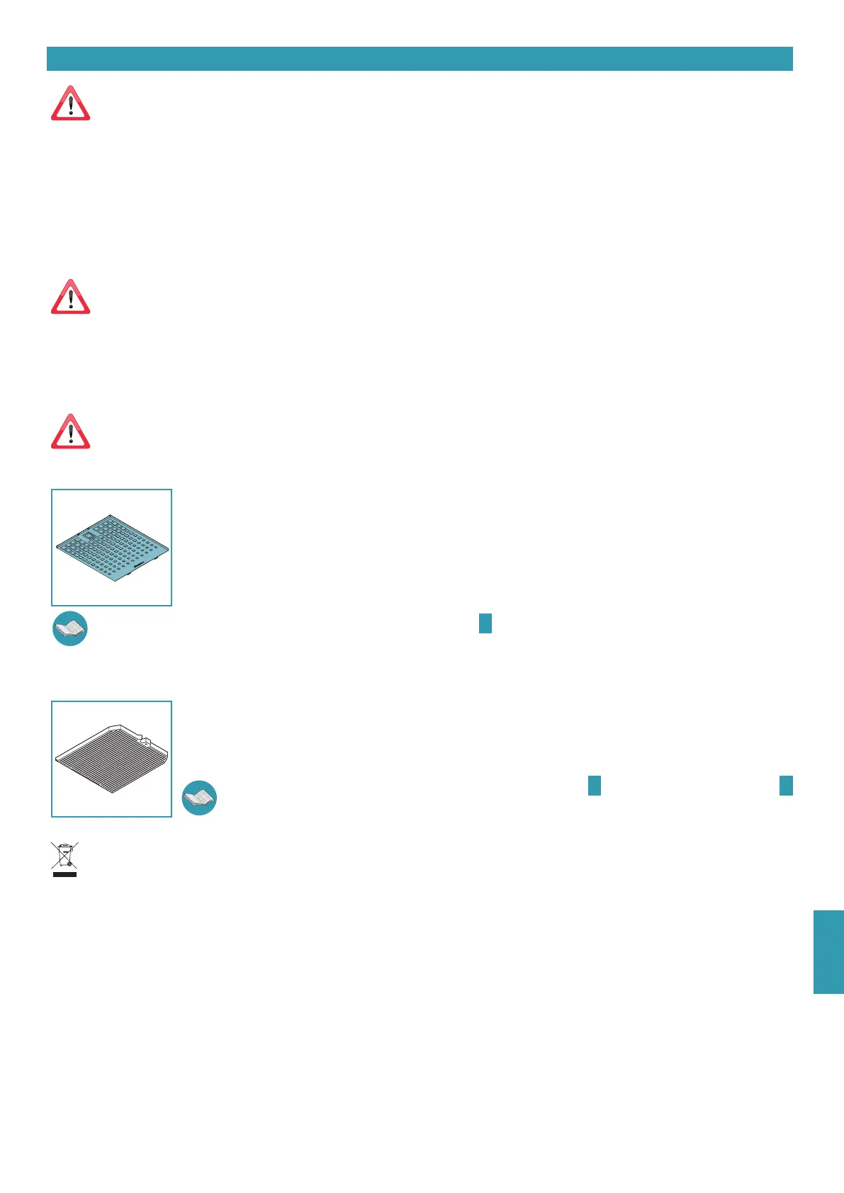 För uttaget av metallfettltren skall du verka på handtaget (se instruktioner G på sid. 6). För insättning skall du utföra åtgärden i omvänd