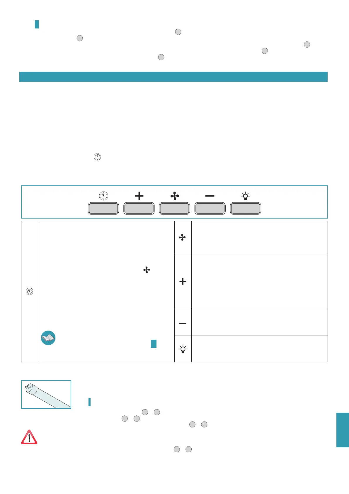 Painamalla näppäintä kuvun moottori syttyy (tai sammuu):