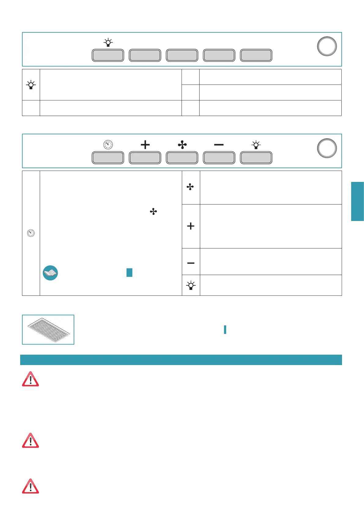 Preste especial atención a los ltros metálicos antigrasa y a los ltros de carbón activo, la limpieza frecuente de los ltros y de sus soportes asegura que en